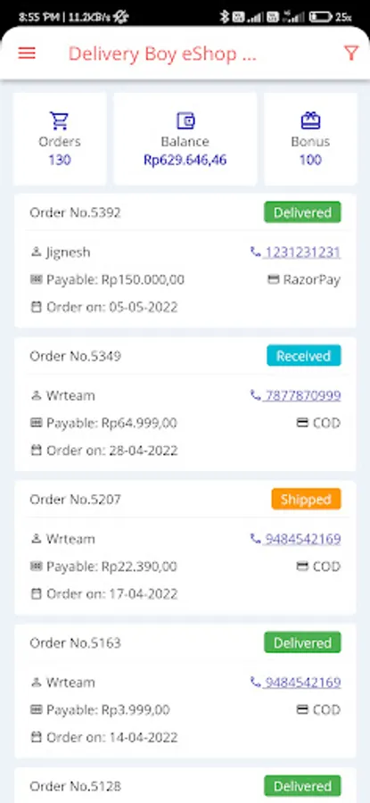 Delivery Boy App for Goprime Shopping App. Easy to use app