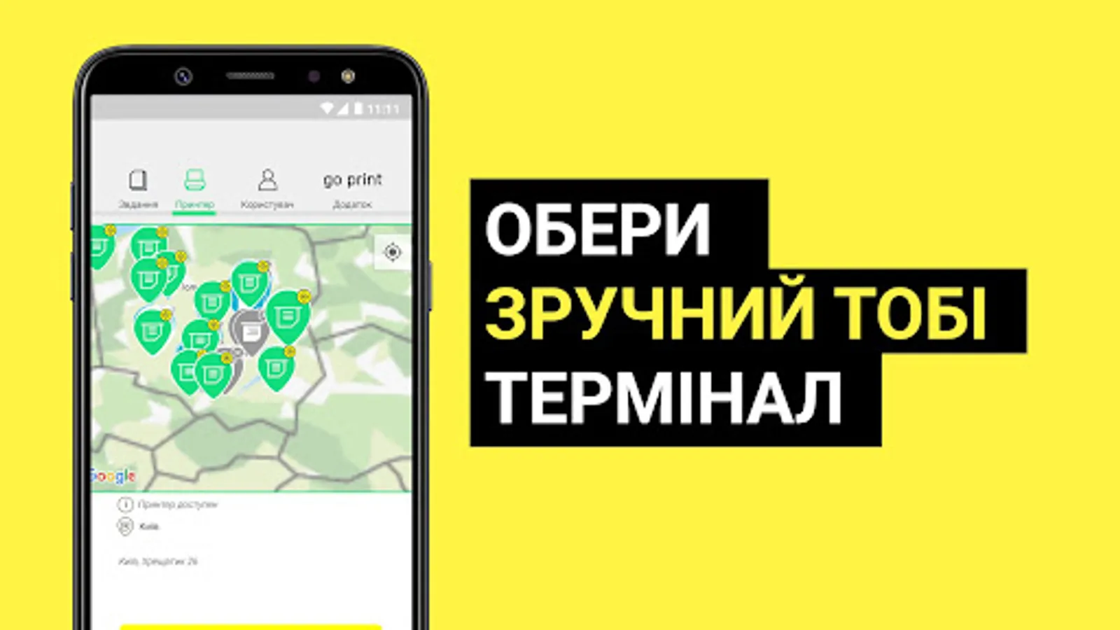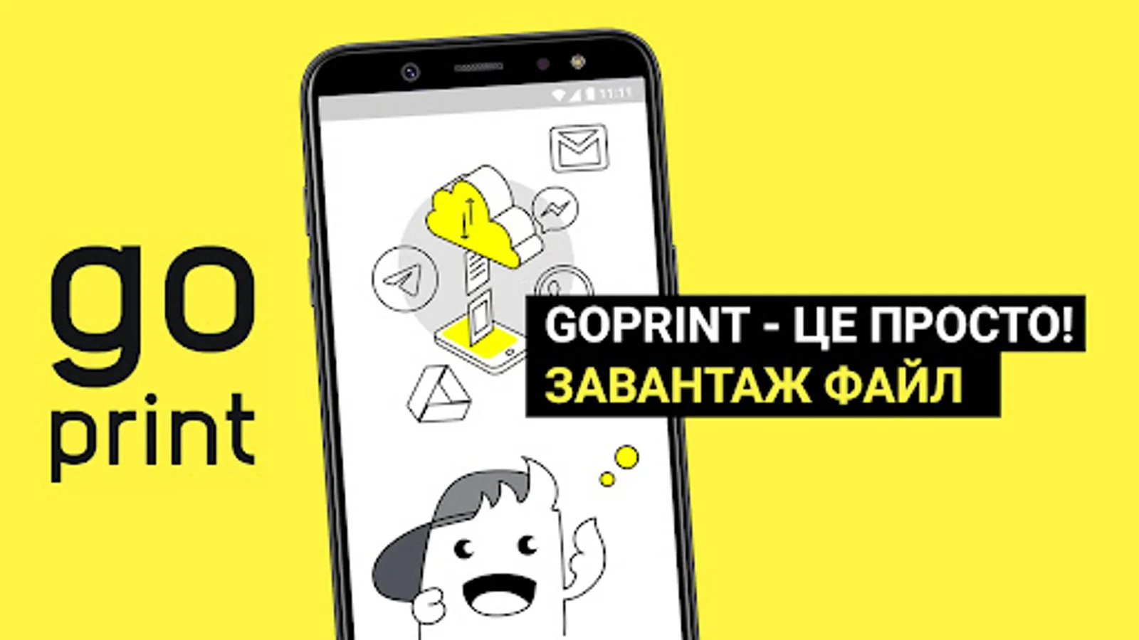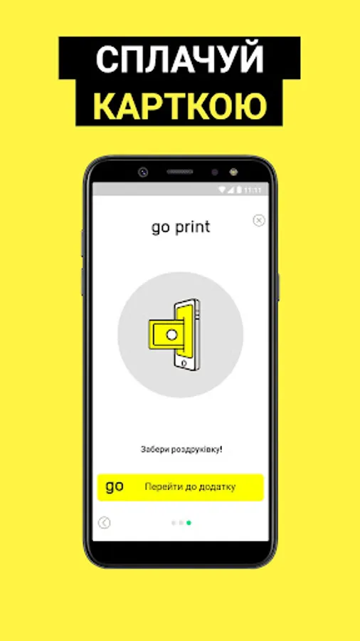 - Upload files that you want to print via app. To upload files from PC visit the website goprint.in.ua. All uploaded files are available to pick up within 24 hours.