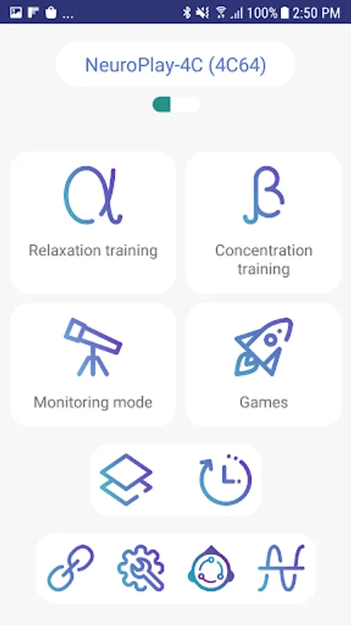 It contains functionality to view and record data, do alpha and beta trainings to train concentration relaxation.