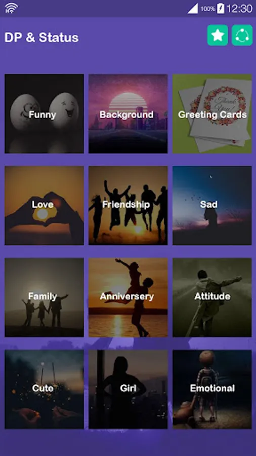 Categories:- DP and status Funny images, BD DP and status, Greeting Cards Dp, Sad Status, Friendship DP and status, Love DP and status, Family Status, Anniversary DP and Status, Attitude DP and Status, Emotional Status, Girls and Cute Display images all of these categories contain new trendy famous emotions, quotes and thoughts as DP status.