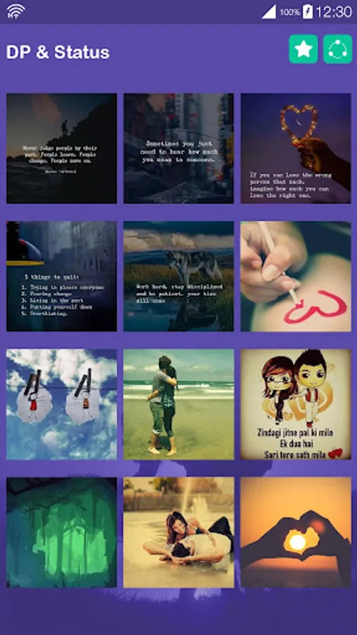 You can create custom Display(DP) image and status by getting images from your mobile gallery or taking selfie with customize text and stickers quotes and thoughts as well as with backgrounds color.