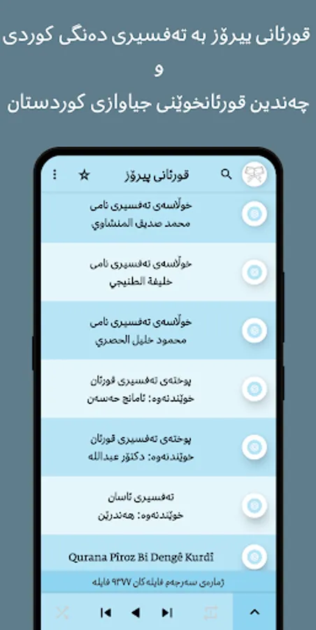 قورئانی پیرۆز بەدەنگی چەندین قورئانخوێنی کوردستان و جیهانی و بوونی چەند تەفسیرێکی کوردی بەشێوەی دەنگ