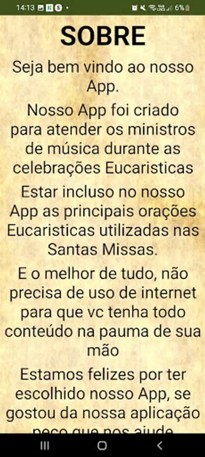 In this app you will find the main Eucharistic Prayers that are used in celebrations without the need to use the internet, you can access all the content present in the application