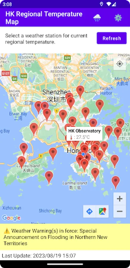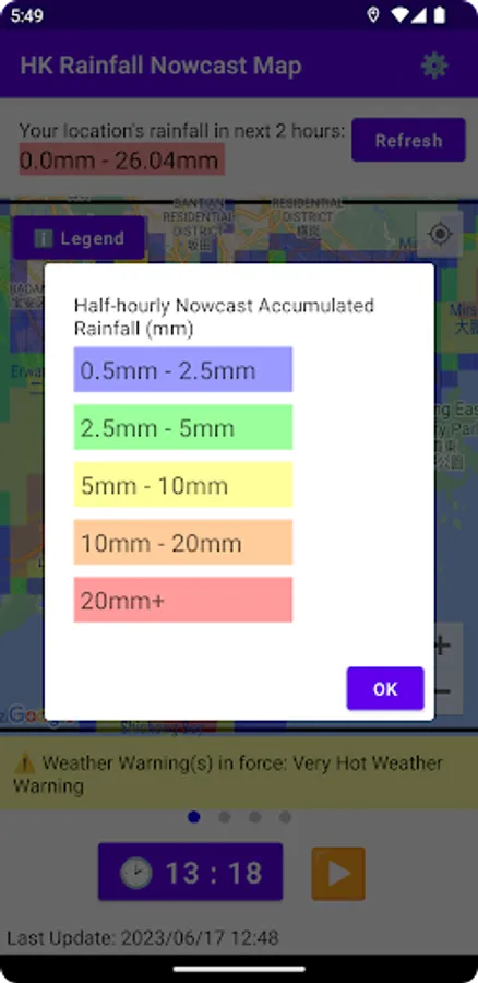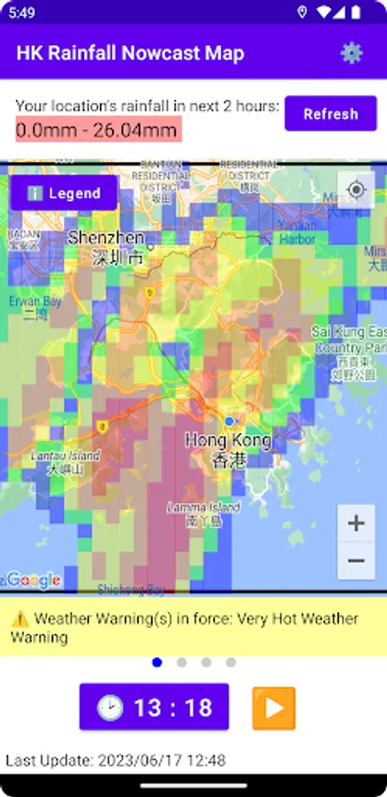 This app displays rainfall nowcast and current regional temperatures of Hong Kong on the map, also provides rainfall nowcast of your location.