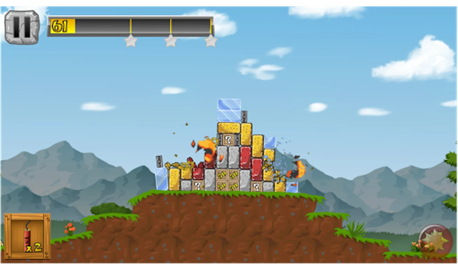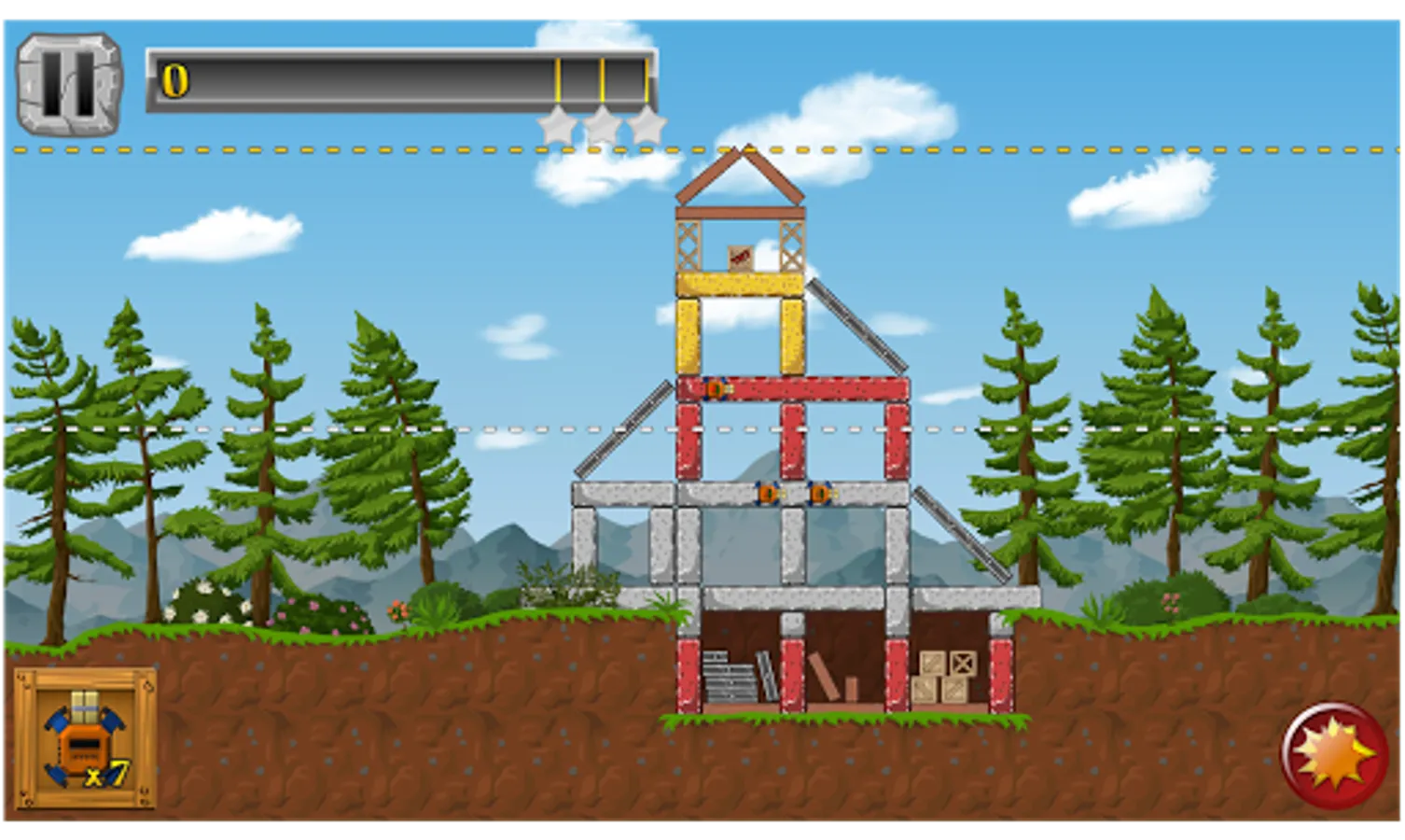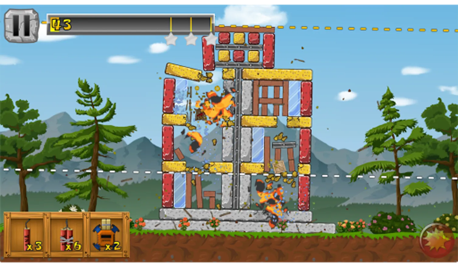 In a series of 48 awesome levels in 2 worlds, you'll discover brick structures. With bombs like dynamites, C4 and other powerful bombs, you'll have to demolish everything!