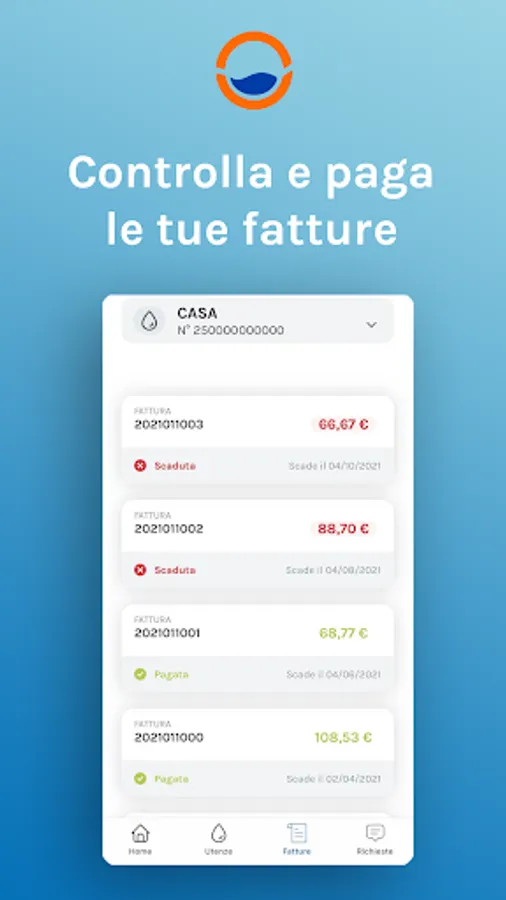 - Invoices and payments: you can consult all your bills, download them and pay them directly via the app with your credit card, in complete safety;