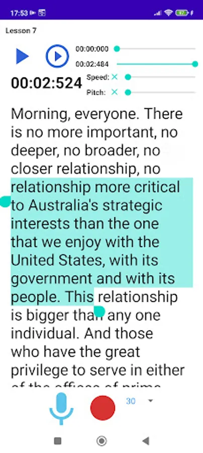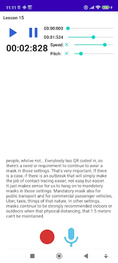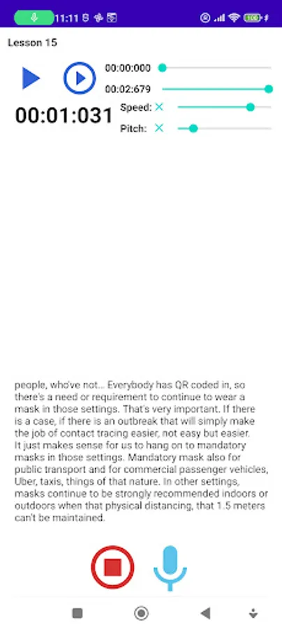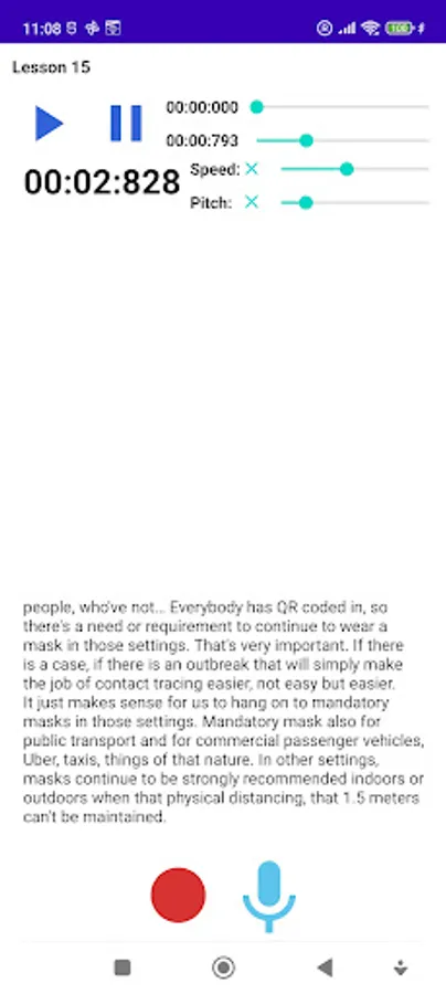 With the new speed and pitch control playback capability, you can hear the speakers' and your own final sounds of each words slowly and clearly and correct it. Not just the final sounds, you can review the whole sentence flow by adjusting the speed and/or pitch.