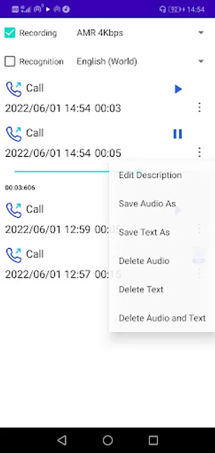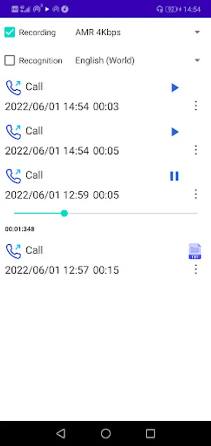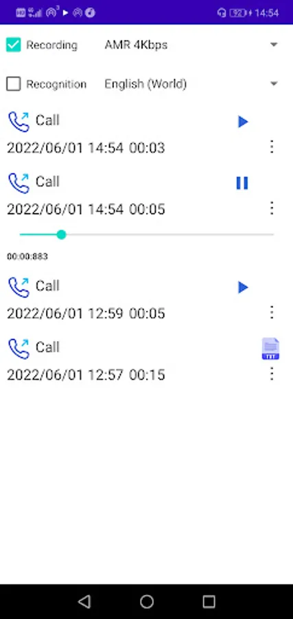 3. Recordings and Recognition contents are saved to files and can be viewed or listened in the app and exported to other folders