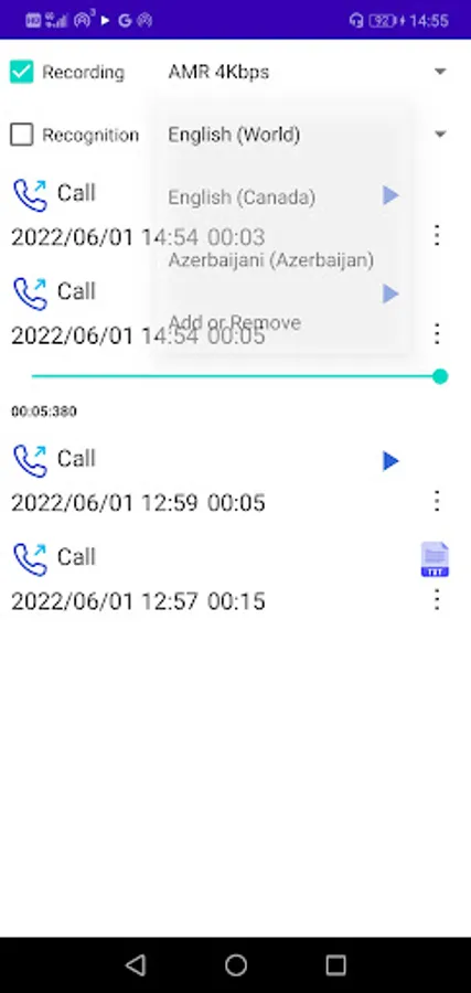 5.In some Android models, they allow both recordings and recognition at the same time. If it is not allowed, recordings will be performed over recognition if both recordings and recognition checkbox are selected.