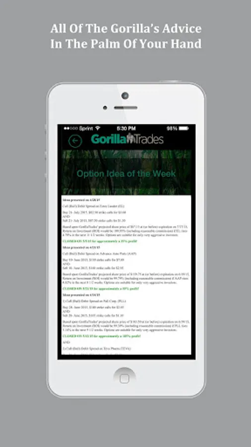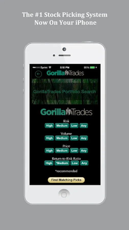 GorillaTrades powerful technology is now available at your fingertips! Receive GorillaTrades exclusive Stock Picks, Options Picks, Newsletter and much more on the new GorillaTrades app! The Gorilla’s stock market advice has never been more accessible! Browse The Gorilla’s recommendations with ease using the new GorillaTrades Portfolio search. Simply search for stocks based on your personal criteria, and the GorillaTrades app will produce the results that match what you are looking for! Login with your same GorillaTrades credentials, and get started today!