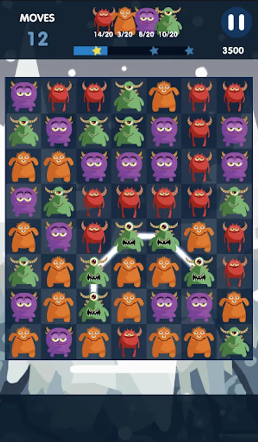 - Connect 3 or more same monsters to score points.