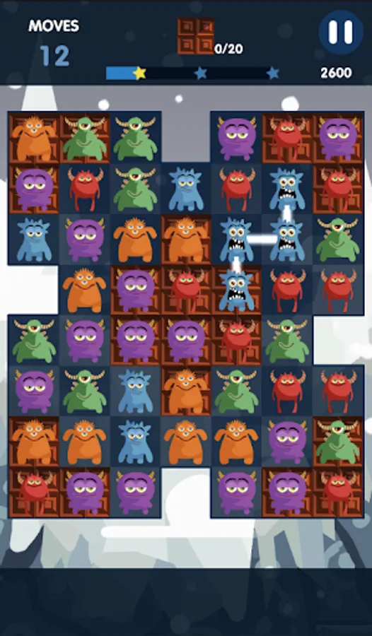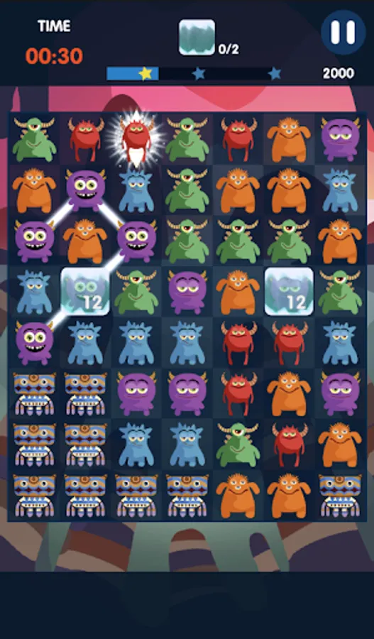 Swipe and connect the monsters to collect chocolates, dismantle bombs and break ice cubes to achieve missions and unlock new levels.