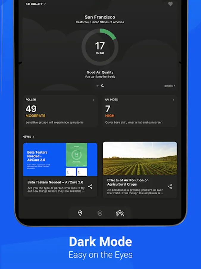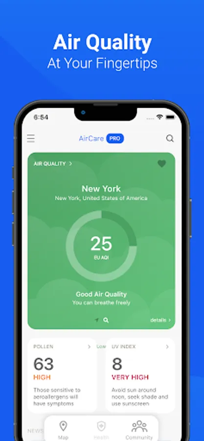 AirCare - the only app you'll need to track air quality, pollen and UV! Featured by Forbes, BBC, NASA, Google, and awarded by the UN.
