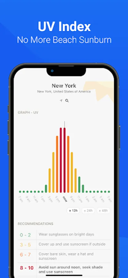 - UV Index Tracking and Forecasts: Don't get sunburn on the beach, know when to seek shade