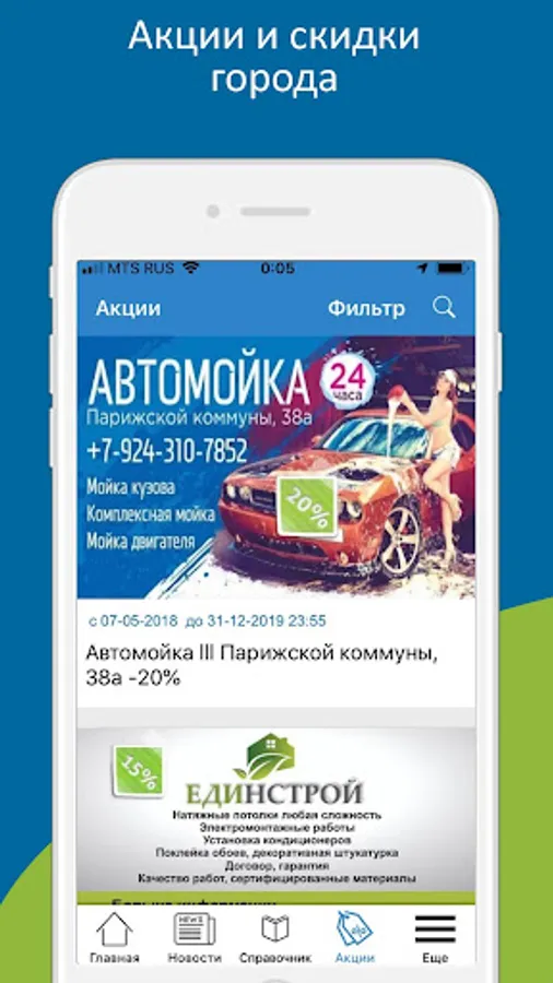 Promotions - discount system of the city, all discounts in one place. To get a discount, just show the application screen.