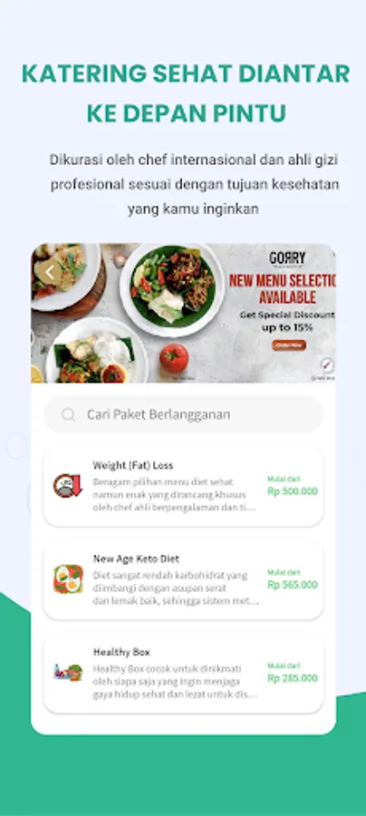 Want to subscribe to a healthy food package according to your health goals? Don't worry, there is a Gorry Gourmet feature for you to use. Choose your package, specify the address, select the menu you like during the subscription. Just sit back, healthy food is ready to be delivered to you. In fact, at Gorry Gourmet there is also a special diet package according to the results of the medical lab or doctor's recommendation, you know!