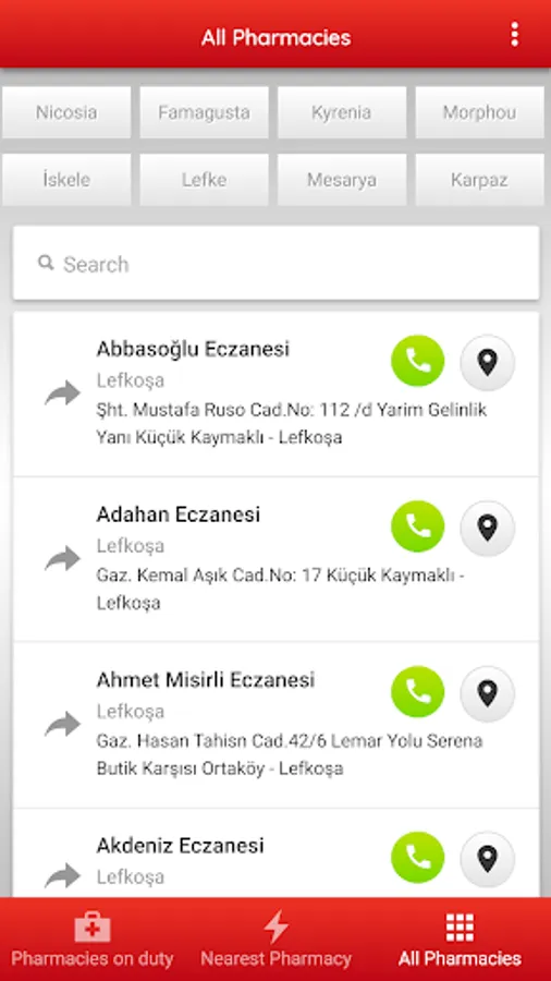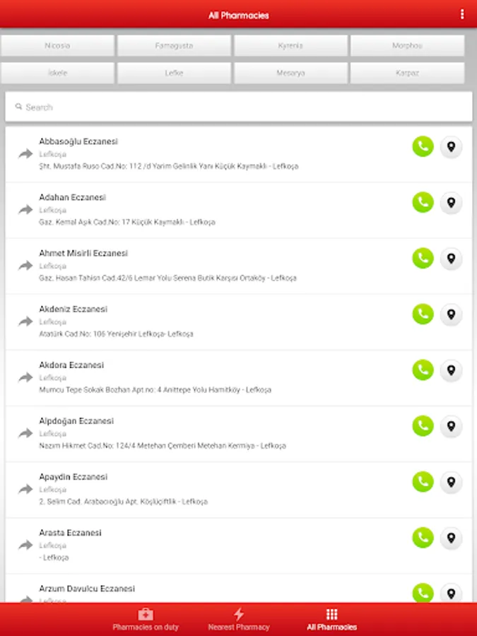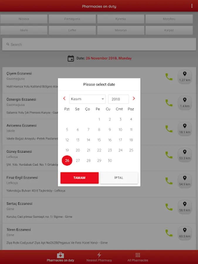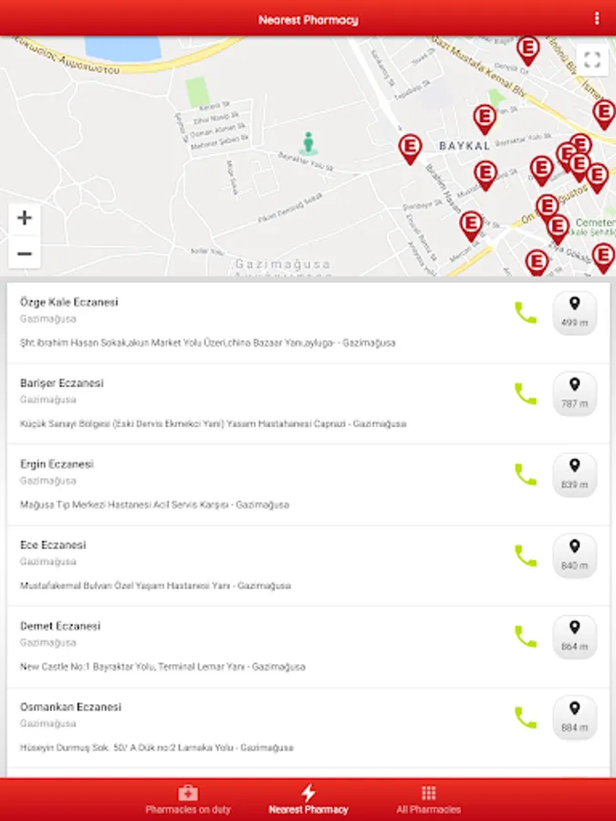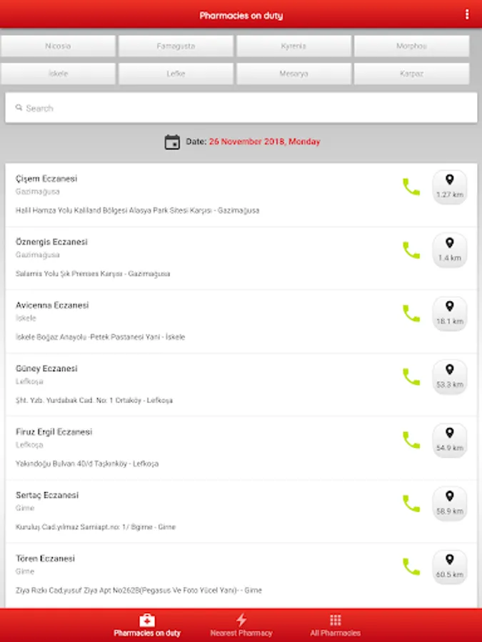 Our mobile application shows the list of the pharmacies with all locations in North Cyprus, and also see pharmacies on duty.
