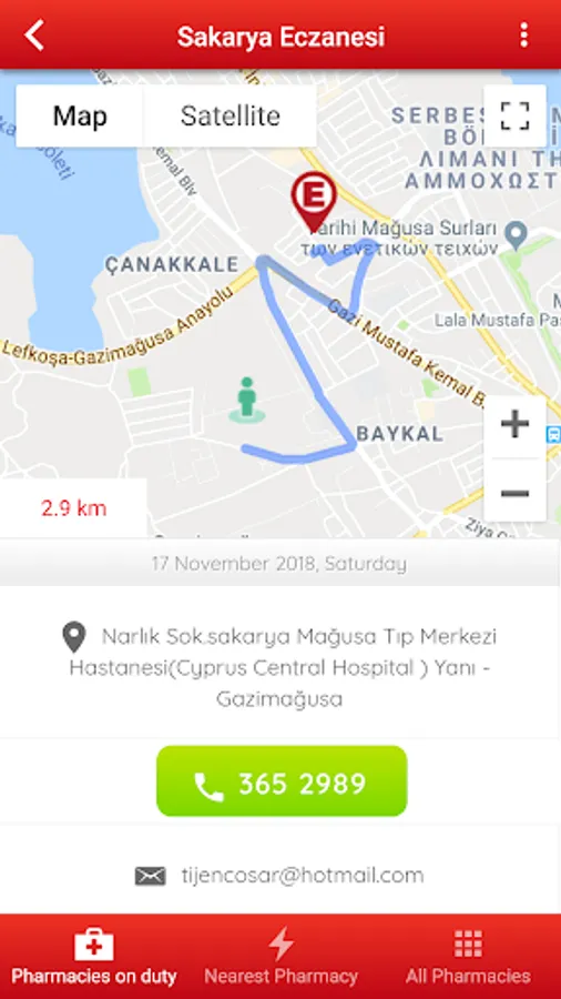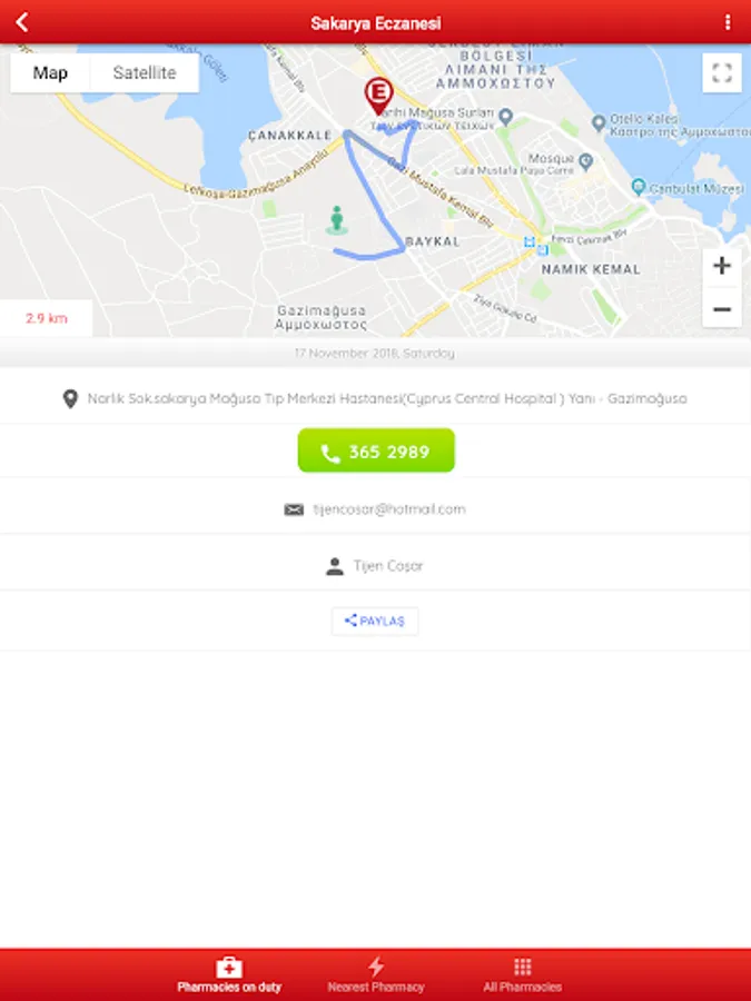 You can find the name, address, location, email and the phone number of the pharmacies. If you need to contact the pharmacy, you can call by just a simple tap on the phone number.