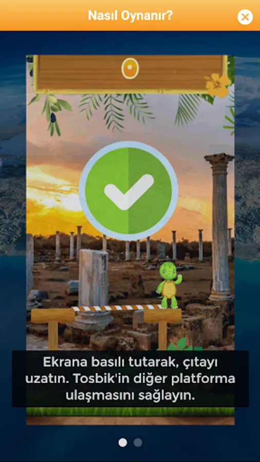 Hold your finger on screen to stretch out the stick! Let the Tosbik reach the other platform.