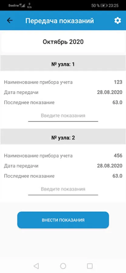 • передать показания приборов учёта (счётчиков);
