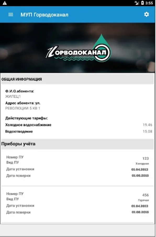 • получить детализацию по начислениям за услуги водоснабжения и водоотведения;