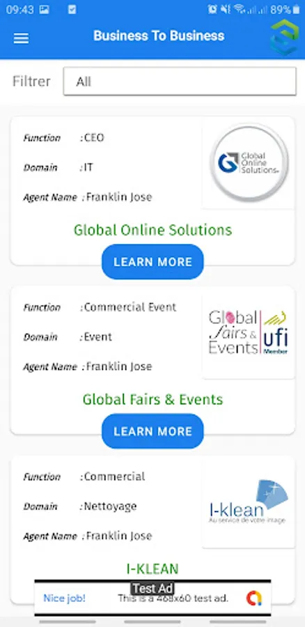 In order to ensure the satisfaction of the users, Supply Demand Matching was made to be easy to navigate, practical, efficient and effective. After entering their data, the user can easily look at all the exhibitors present with their information and set a meeting via a one to one messaging feature.
