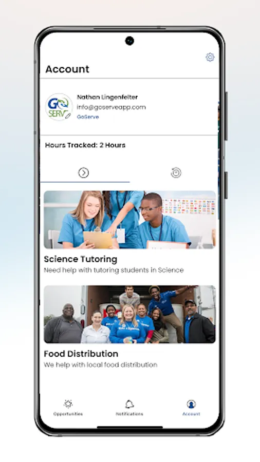 Based on their local organization, users see a listing of all the available opportunities within their community. Grounded in service, GoServe recognizes a local need and creates a way for eager students to assist that need. Once an opportunity is completed, GoServe automatically sends notification to the local organization and logs the community service hours to satisfy requirements set by each organization. Students can then see their approved hours at any time through the GoServe app. This way students are giving back, communities are served, and service hours are properly organized for school or organization administrators. Create an account, join an organization, and begin serving your community today!