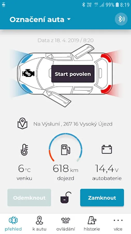 - You have a constant overview of the car - about closing or locking doors and windows, lights, battery and tank status, whether or not the engine is running