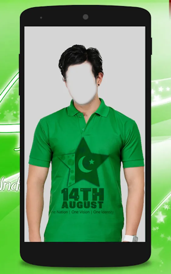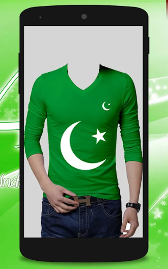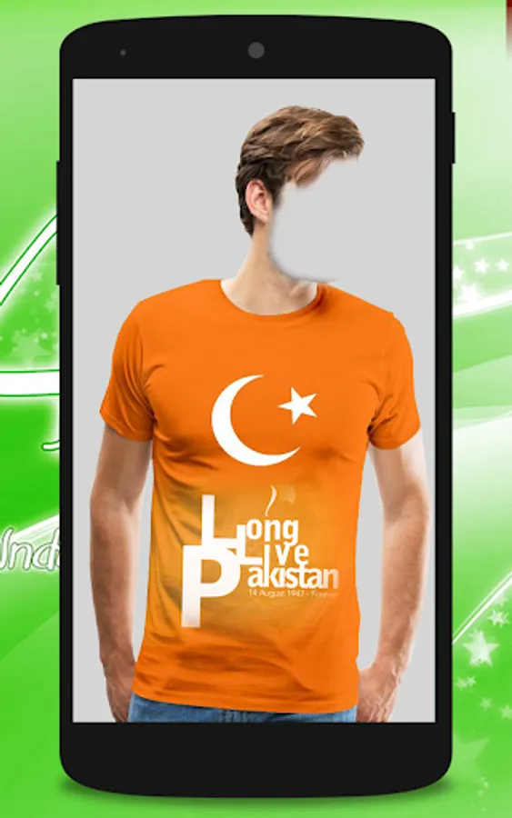 No need to purchase expensive Pakistani T-shirts.Just Install this free application and select shirt which you like.It can easily change your dress according to your choice on photo editing and make your personality beautiful in the Pakistani Flag shirts with 14 August Jashn e azaadi slogans.