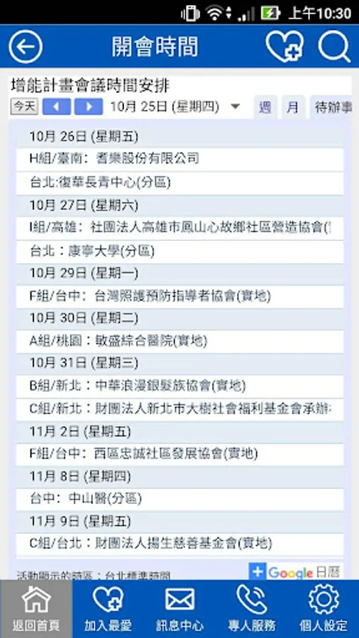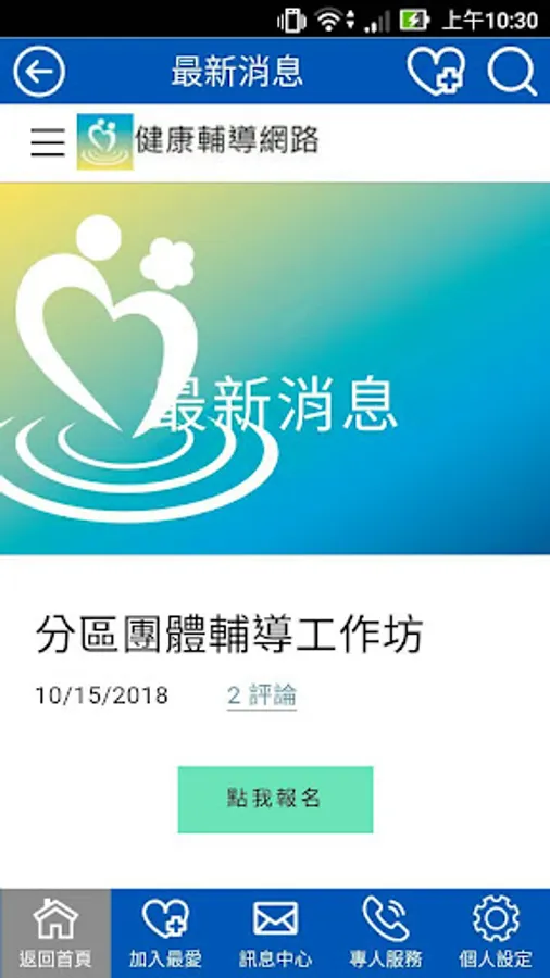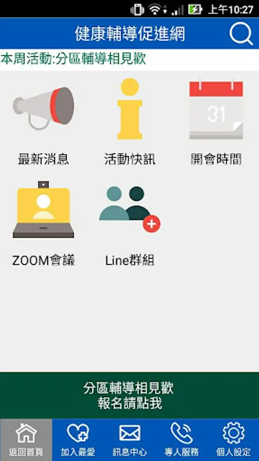 本APP連結國民健康署「預防及延緩失能輔導網絡」之各項輔導平台,並會於主動推播重要消息,提醒您參與相關會議及工作坊之主題、時程。