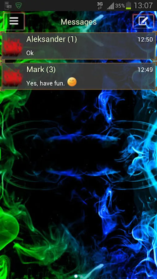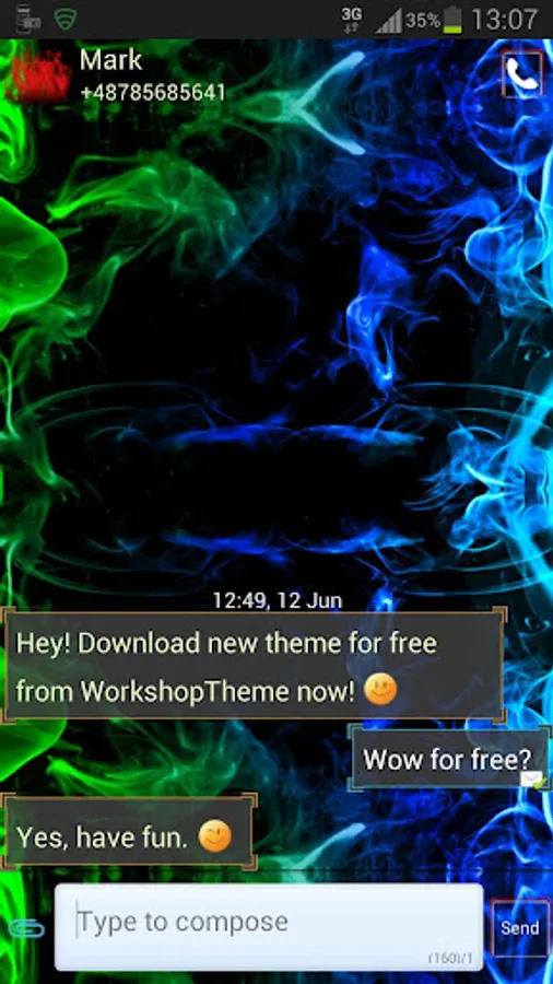This a new skin for GO SMS Pro Theme = is designed especially for people who like the colors blue and green