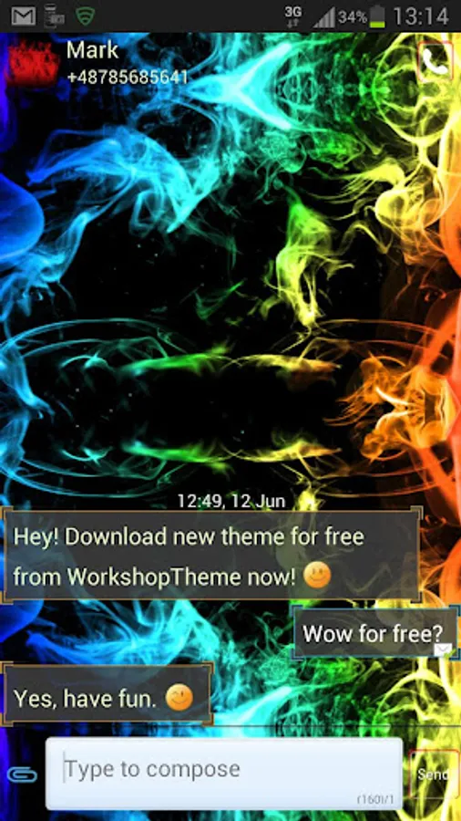 Theme rainbow smoke works only with GO SMS Pro application if you don't have it, download for free from Google Play.