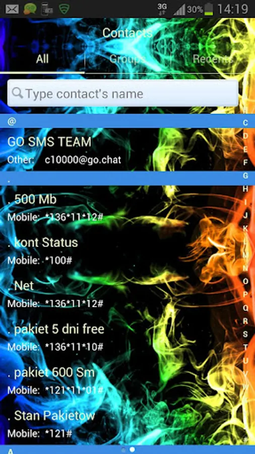 6. Tap the GO SMS Pro Theme rainbow smoke