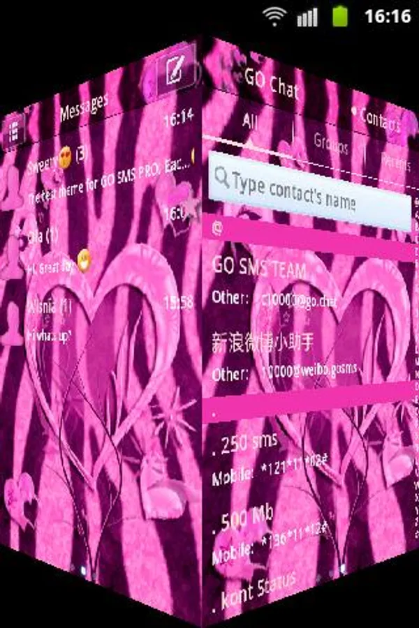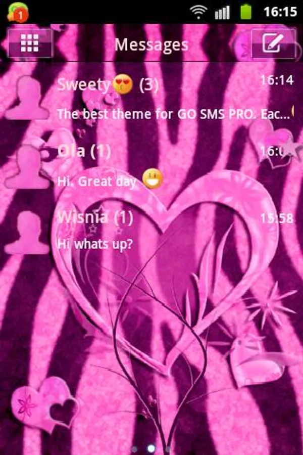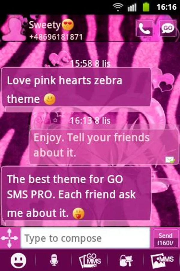 Heart theme zebra pink works only with GO SMS Pro application, if you don't have it, download for free from Google Play.