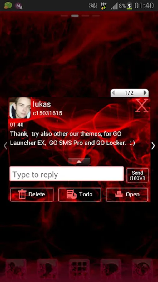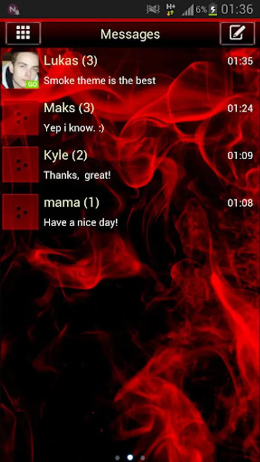 Red smoke theme GO SMS PRO works only with GO SMS Pro application if you don't have it, download for free from Google Play.