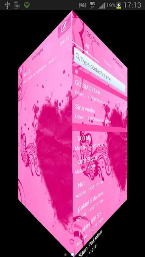 Theme Pink Heart works only with GO SMS Pro application, if you don't have it, download for free from Google Play.