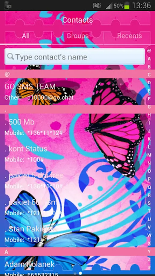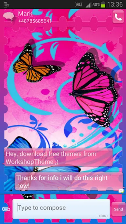 6. Tap the GO SMS Theme butterflies