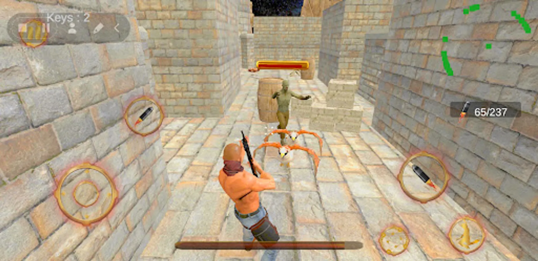 the Ryze Evil Zombie World offline have five levels , in any Ryze Evil Zombie World offline you have to collect the 13 keys and stay alive to go to the next level.