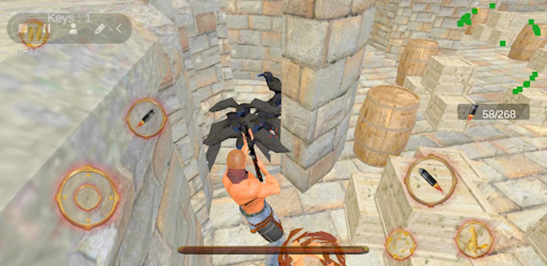 in Ryze Evil Zombie World offline game , you will have one weapon to protect yourself , when you kill zombie or any creature you face , it will drop ammo or heal package .