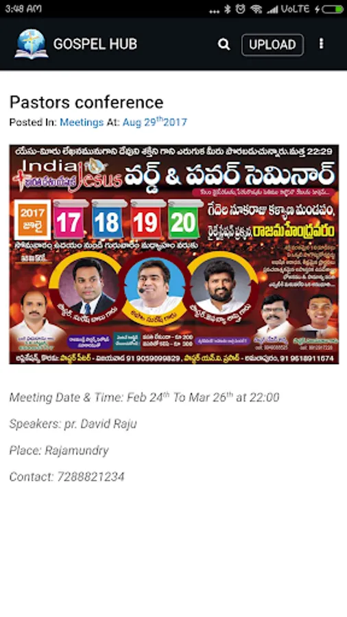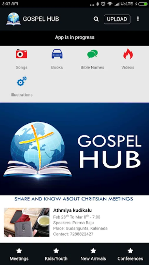 GospelHub is a Christian app. This app is created specially for the Telugu people. Its primary purpose is to give information regarding where the Christian meetings are happening. More than that, everyone can easily SHARE about their Christian events.