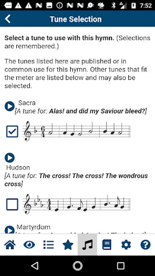 - Listen to the tunes (BHB, Gospel Hymn Book 1989/1991 only)