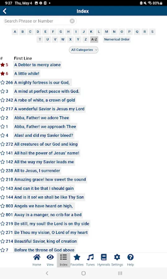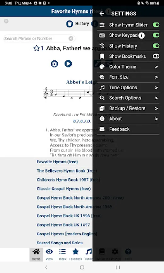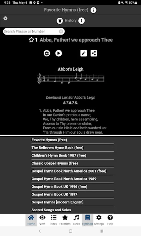 ** Install Favorite Hymns/Hymnals Premium if you wish to have copyrighted hymns included. **