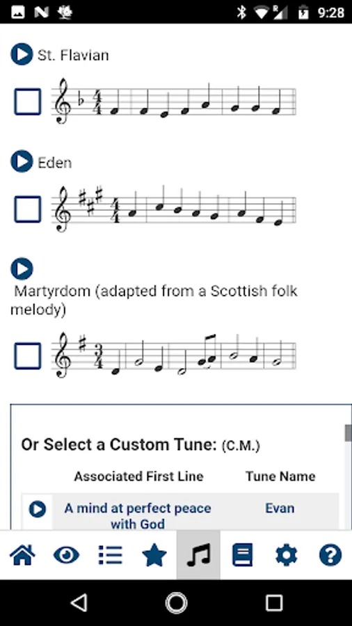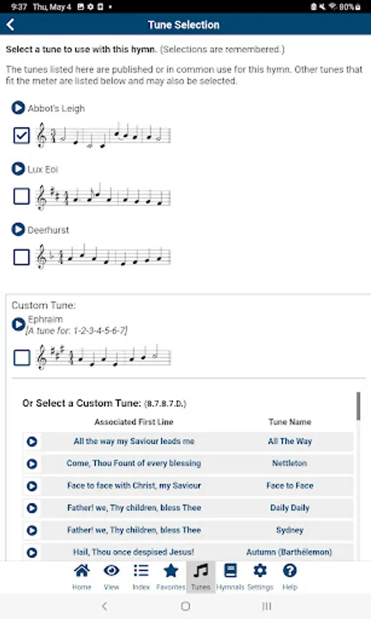 - The Believers Hymn Book (465 hymns with tunes, play all tunes, but no sheet music)