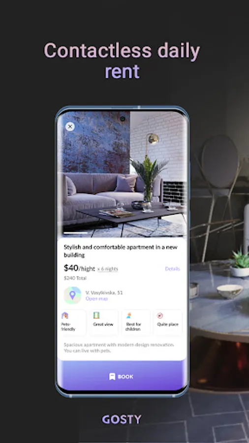 GOSTY is the first rental app with contactless home access and full booking management via smartphone. The app has everything to simplify the rental and delivery of housing, organize an unforgettable vacation, weekend trips, business trips or make money on your property by hosting guests.