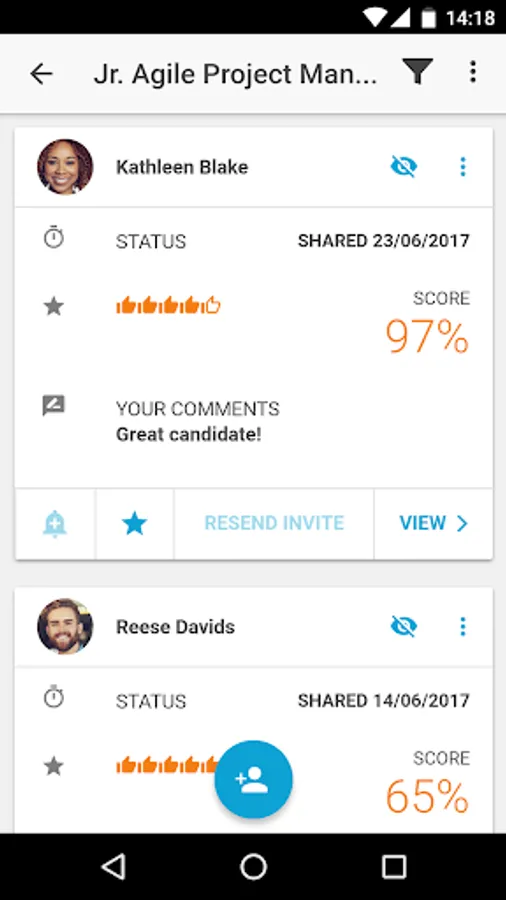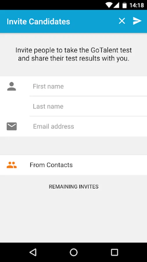 • Automatically invite candidates for testing – As a recruiter or hiring manager, you simply input the email addresses of applicants you want to test and the app does the rest, automatically sending out invites.