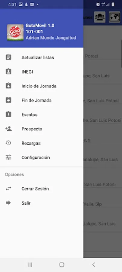 Application for the team of Gota Blanca sales supervisors, it has recharges, surveys, INEGI censuses, prospects