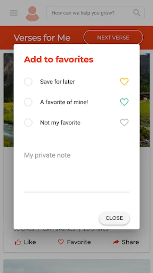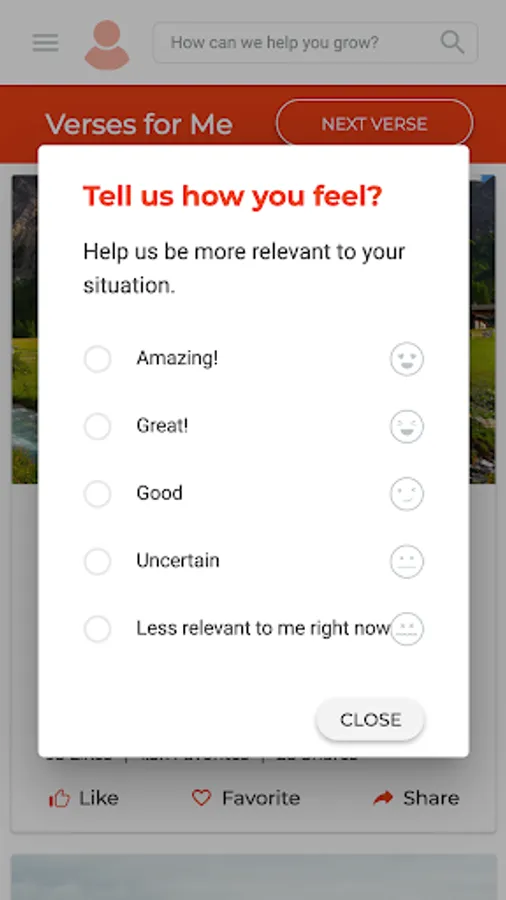 • Realiza una breve evaluación de tu crecimiento espiritual para activar mensajes personalizados a tus necesidades.