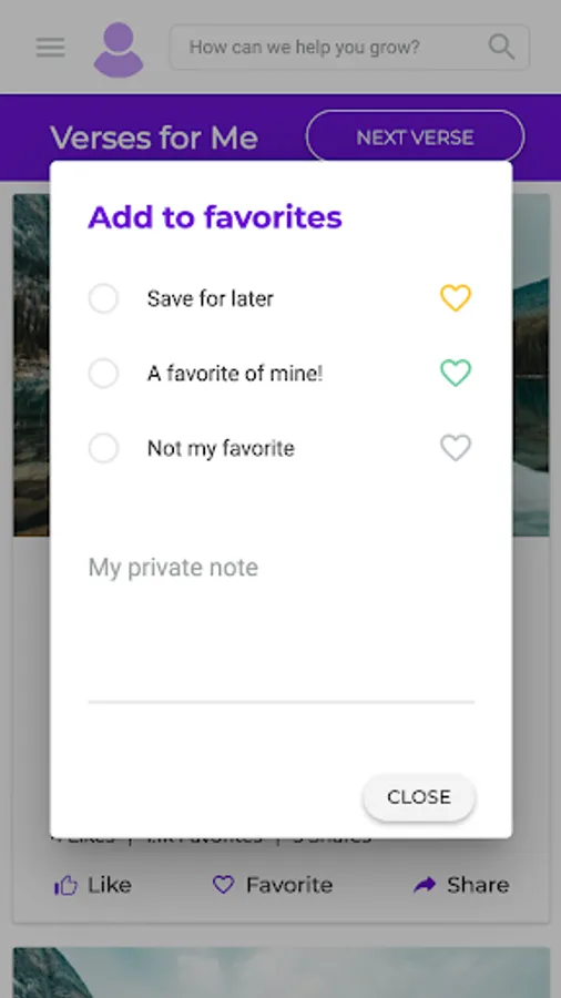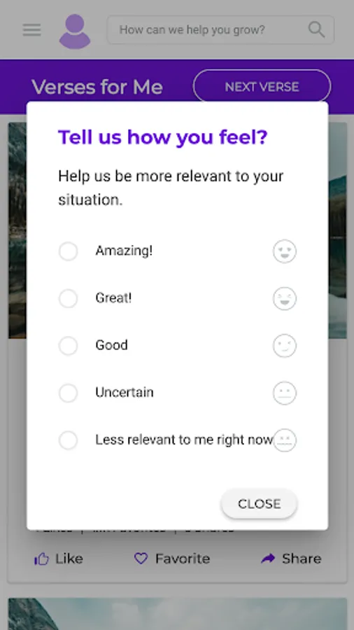 • Realiza una breve evaluación de tu crecimiento espiritual para activar mensajes personalizados a tus necesidades.