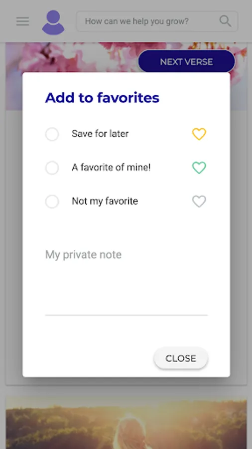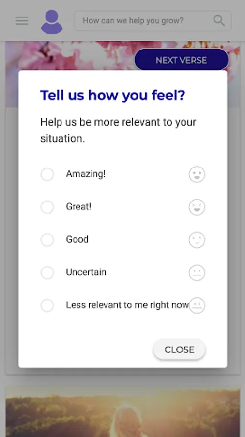 • Realiza una breve evaluación de tu crecimiento espiritual para activar mensajes personalizados a tus necesidades.
