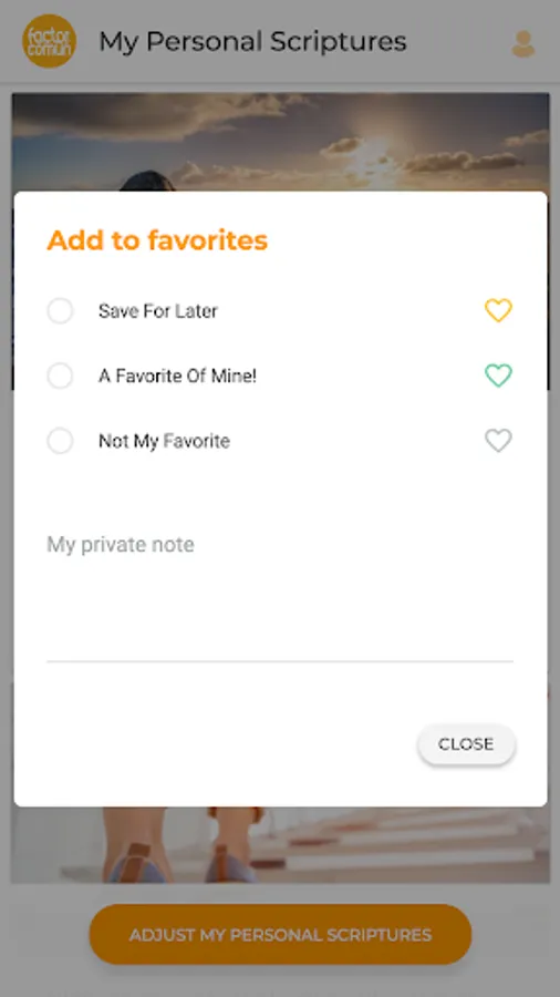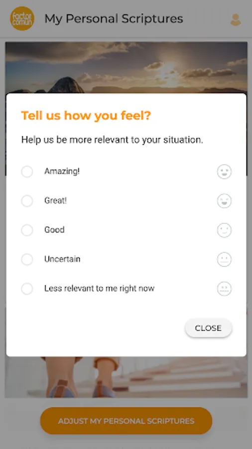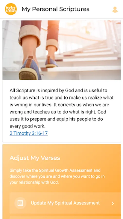 • Realiza una breve evaluación de tu crecimiento espiritual para activar mensajes personalizados a tus necesidades.